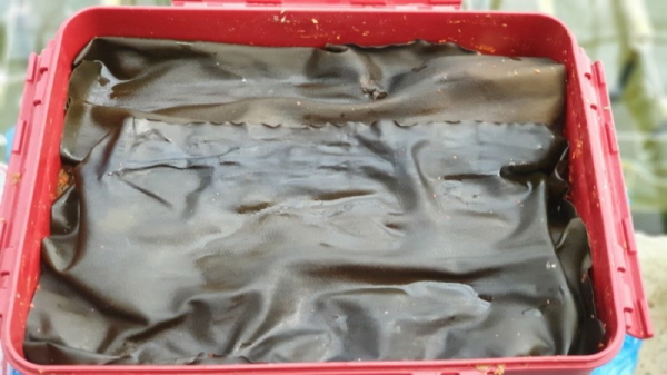 2. 김장 후 김치통 뚜껑을 닫기 전에 찬물에 빠르게 헹구고 마른 수건 행주로 닦아냅니다.
